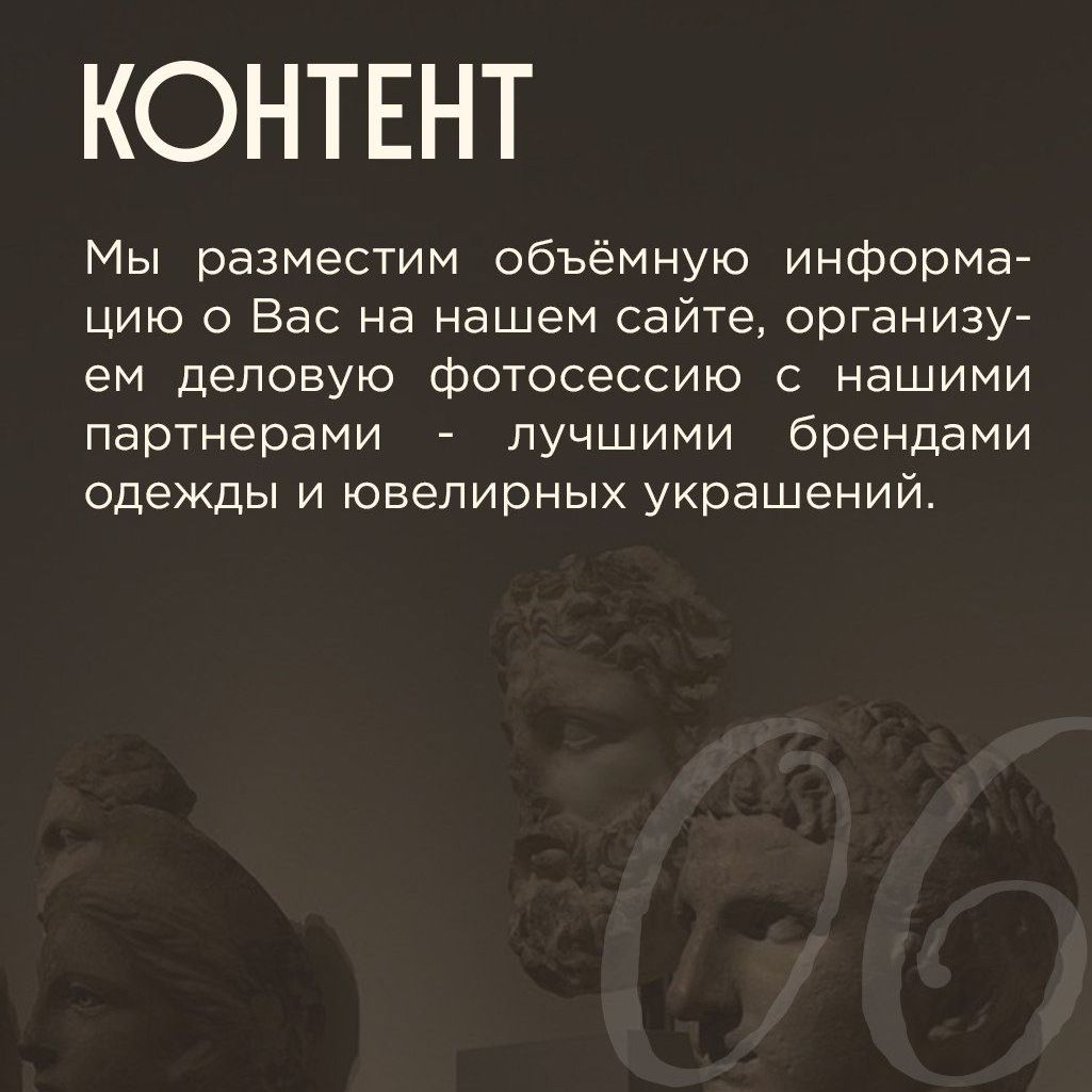 Каждый месяц будет создан с учетом вашего позиционирования. Это очень выгодное предложение, где вы получаете - глубинное интервью, деловую фотосессию, сессия с коучем и специалистом по изменениям Анной Яковенко. в результате вы получите профессиональные фотографии, стратегию позиционирования, рекомендации от наших специалистов по мышлению.